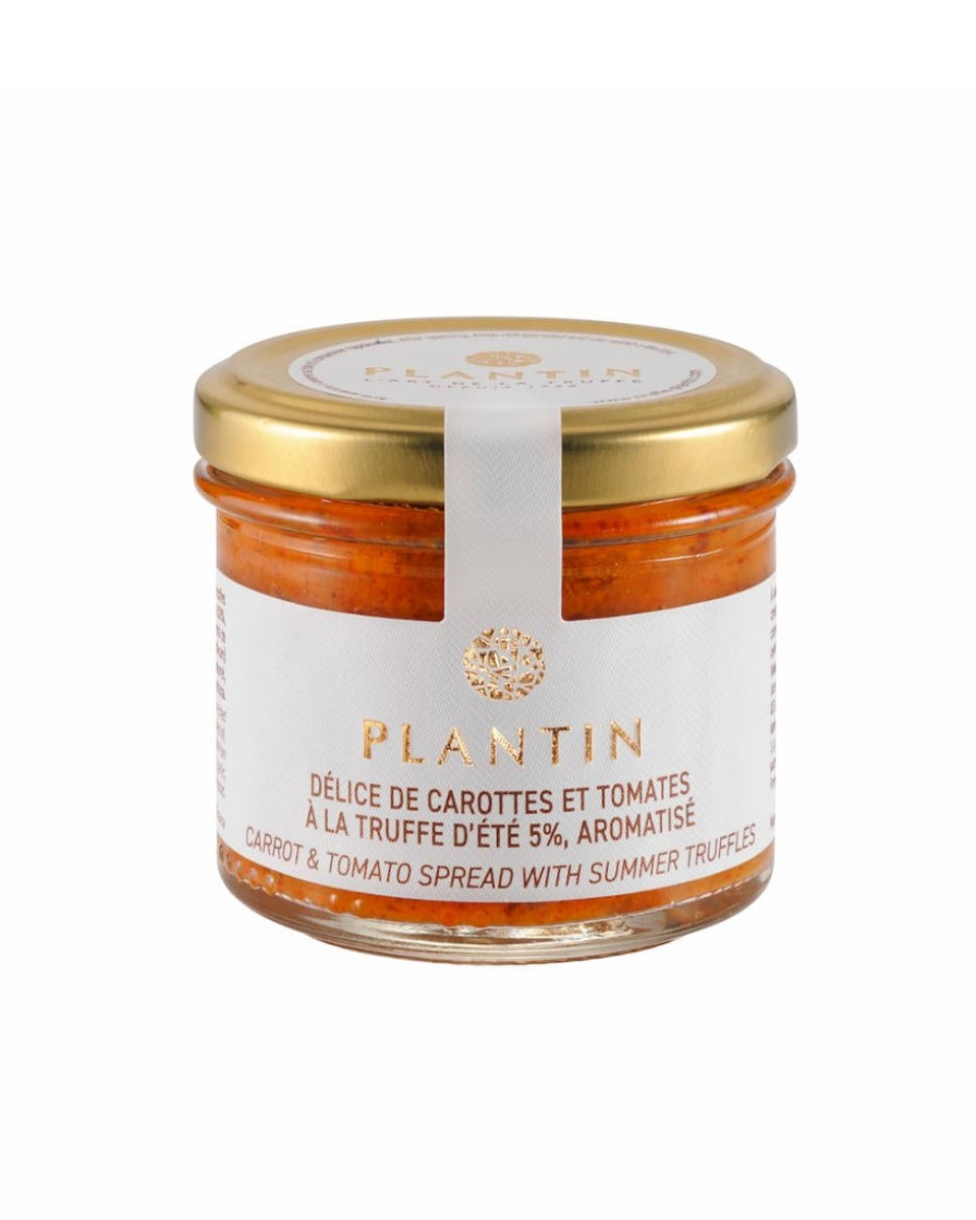 Délice de carottes et de tomates à la truffe d'été pour un apéritif frais, parfumé et ensoleillé. Les carottes alliées aux tomates vous apporteront une délicate fraicheur en bouche tandis que la truffe d'été viendra y apporter ses saveurs généreuses et raffinées.
