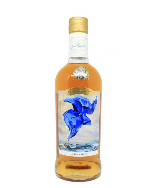 Compass Box – Ultramarine (Extinct Blends Quartet) – 70 cl. Blended Scotch d’une grande profondeur, mêlant richesse oxydative et fumée délicate. Nez ample de toffee, miel, cire d’abeille et raisins secs, relevé de zeste d’orange, épices douces (muscade, cannelle) et d’un voile tourbé/iodé à la façon d’un vieux blend. Bouche crémeuse et énergique : caramel blond, dattes, chocolat noir, pointe saline et tabac blond/cuir souple, avec une fumée de braise qui s’étire sans lourdeur. Finale très longue, sèche et précise, sur l’écorce d’orange, la cendre froide et un boisé noble (cèdre, santal). Degré alcoolique : 51 % vol.